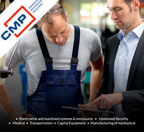 CMP Advanced Mechanical Solutions est une compagnie manufacturière avec des usines à Châteauguay, Québec et Binghamton dans l’état de New York. Cette compagnie est un chef de file dans l’industrie manufacturière et se spécialise dans la fabrication de métal en feuille, dans les systèmes usinés et dans les enceintes métalliques. Leurs clients oeuvrent dans les industries médicales, de la sécurité nationale et des biens d’équipement. D’ailleur, Tesla Motors, Amazon et Philips Médical se retrouvent sur leur liste de clients.