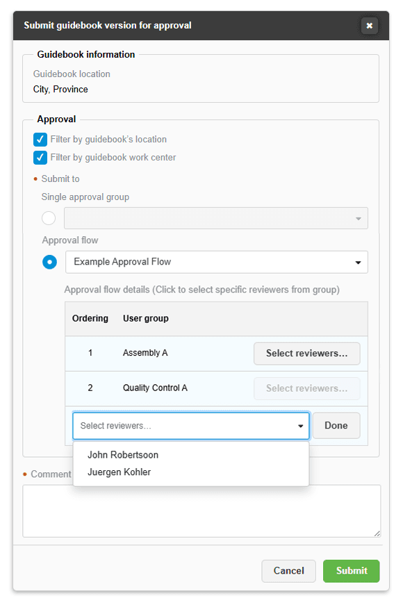 Pensez-y de cette façon : vous ne voudriez pas qu'un spécialiste de la chaîne de montage valide une procédure de soudage complexe. En acheminant les guides vers le groupe approprié, vous vous assurez que ce sont les personnes possédant l'expertise la plus pertinente qui donnent leur feu vert.